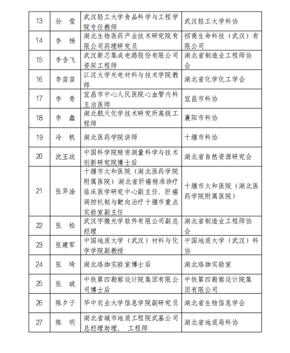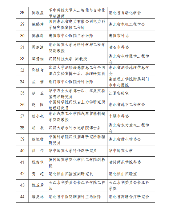 省科协希望入选的青年科技人才珍惜职业早期个人发展机会,不断探索未来成长和事业发展方向,持续开展原始创新、技术攻关、成果转化,在实现高水平科技自立自强和科技强省、人才强省建设实践中建功立业,为加快建成中部地区崛起的重要战略支点、奋力谱写中国式现代化湖北篇章贡献青春和智慧。